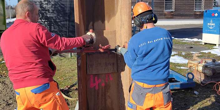• Dauer: Ca. 12 Stunden für das Einbringen, Montieren und Verschweißen der vier Bohlen (ohne Einrichtung).