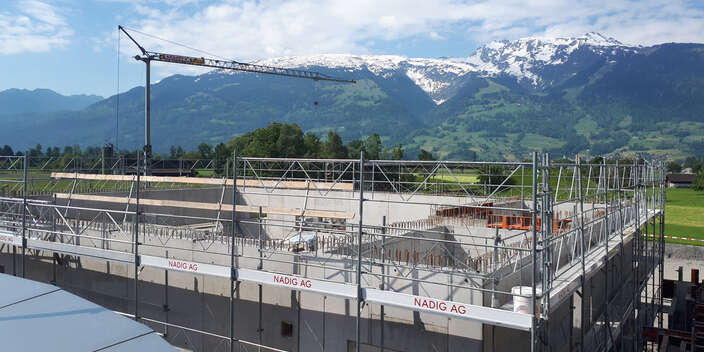 Aber noch Weiteres ist im Gange: nebst den Umbauarbeiten auf der ARA wird parallel der Anschluss der ARA Wartau an die ARA Sargans vorbereitet. Und das neue Biologiebecken erhält ein Solarfaltdach! Apropos… Nachhaltigkeit ist uns und auch unserem Bauherrn wichtig! Wir haben zum Beispiel den bestehenden Stahlbau vom Sandwäschergebäude versetzt. Dieses Gebäude wird neu als Werkstatt genutzt. Dadurch musste kein neues Gebäude erstellen werden. Auch bei den Submissionsvergaben war Nachhaltigkeit jeweils ein Zuschlagskriterium.