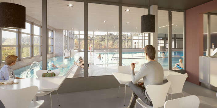 Während den Sanierungsarbeiten verändert sich im Hallenbad in Bauma so einiges … Die Neudisposition der Räume ist so geplant, dass die Optimierungen in dem bestehenden Gebäudevolumen gelöst werden können. Die über 40-jährige Gebäudetechnik wird beinahe komplett saniert. Bei den neu gewählten Badewasseraufbereitungsverfahren setzen wir Unterdruck-Sandfilter ein. Und neu wird der Nichtschwimmerbereich aus Sicherheitsgründen vom Multifunktionsbecken abgetrennt. Geplant ist für Familien ein kleines Plantschbecken! … und für Jung und Alt eine Kletterwand und einen lässigen Tarzanparcour.