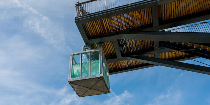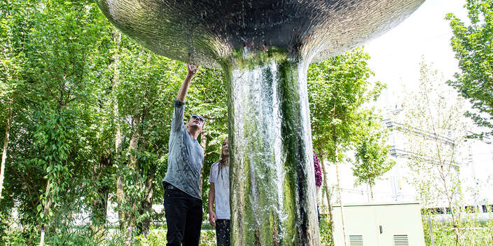 Über den ganzen Park spannt sich die 130 Meter lange Wunderbrücke mit einem Gefälle von 5%, welche zusammen mit dem Schweizerischen Ingenieur- und Architektenverein (SIA) entwickelt wurde. Von dieser fällt der grösste Wassertropfen der Welt mit 5m³ rund 10 Meter in die Tiefe, wird umgelenkt und schiesst hoch hinauf. Das Wasser für die Exponate wird im Kreislauf gepumpt und in einem mehrstufigen Verfahren wieder aufbereitet. Tönt kompliziert? Auch hier kommt unsere Firma wiederum ins Spiel: Wir erstellten die Simulation der Hydraulik des fallenden Wassers.