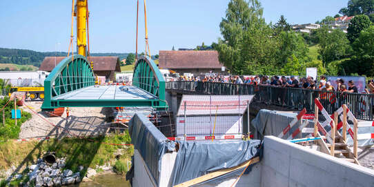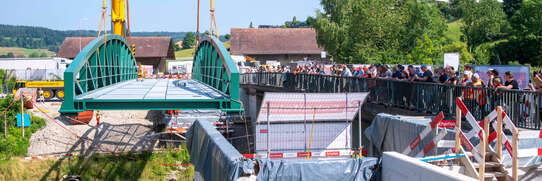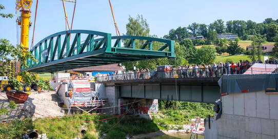 Am Donnerstag, 12. Juni 2025 konnte ein wichtiger Meilenstein mit dem Brückeneinhub bei dem Projekt Zulaufkanal Wülflingen in Winterthur erreicht werden. Die rund 42 Tonnen schwere und 35 Meter lange Stahlbrücke wurde bei perfektem Wetter und bester Stimmung im Projektteam und den zahlreichen Zuschauern an ihren Standort über der Töss versetzt – mithilfe eines der grössten Pneukrane der Schweiz. In Kürze wird die Stahlkonstruktion das gesamte Abwasser der Stadt Winterthur über zwei Stahlrohre mit einem Durchmesser von 1400 mm zur ARA Hard leiten. Als Projektverantwortliche bedanken wir uns bei allen Beteiligten für die hervorragende Zusammenarbeit!