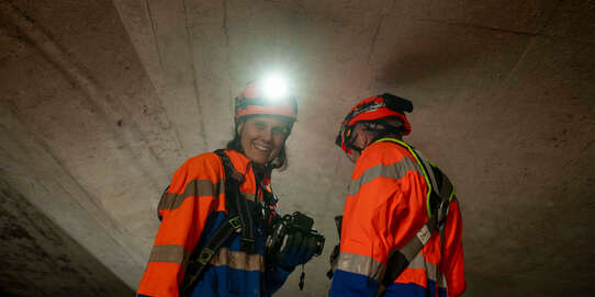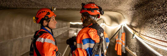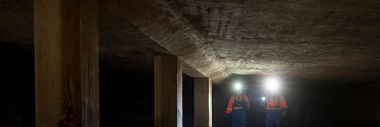 Zusätzlich werden neue Einstiege im Gleisbereich erstellt, was eine enge Zusammenarbeit mit der SBB erfordert. Die Sanierung startete anfangs Jahr 2025 und dauert rund zwei Jahre. Um die Kanäle trockenzulegen, wird das Abwasser durch den jeweils parallel verlaufenden Abwasserkanal umgeleitet. Ein im Kanal eingebautes Abschottungs- und Alarmierungssystem ermöglicht die Arbeiten in jeweils einem Kanalstrang bei trockener Witterung. Aufgrund der auch bei Trockenwetter sehr hohen Abwasserstände wird der Kanal bereits bei kleinen Regenereignissen geflutet. Aktuell sind die Sanierungsarbeiten im linken, rechteckigen Kanalstrang (4.0 x 2.1 m) im Gange. Das schadhafte Betongefüge wir mittels Wasserhöchstdruck abgetragen und mit einem abwasserbeständigen Sanierungsmörtel reprofiliert. Einige Kanalabschnitte werden mittels Zulage von Bewehrung statisch verstärkt. Die Sanierungsmassnahmen verlängern die Nutzungsdauer der Kanäle um rund 50 Jahre.