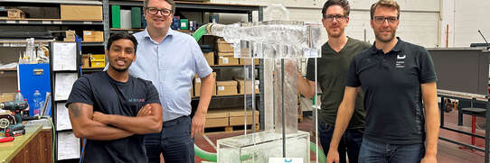 An unserem Kundenanlass «Blaue Zukunft: Wenn Algorithmen Wasser bewegen» konnte das Modell begutachtet werden – das Interesse war gross, die Rückmeldungen durchwegs positiv. Das transparente Modell machte Strömung, Luftführung, Wirbel und die damit verbundene Ingenieursarbeit auf eindrückliche Art sichtbar.