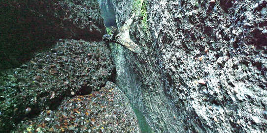 Bei einem ersten Erkundungsdurchgang installierten wir in einem rund 800 Meter langen Schluchtabschnitt Sicherungsseile und klärten die Möglichkeiten für Flug- und Filmaufnahmen. Beim zweiten Durchgang entstand dann das eigentliche Bildmaterial. Eine Person präparierte und signalisierte die Zwischenlandeplätze, die andere steuerte die Drohne. Die Aufnahmen in dieser wunderschönen, aber auch anspruchsvollen Schlucht waren ein Wechselbad der Gefühle.