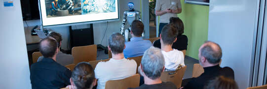 Stampfend trat er an unserem Kundenanlass Mitte November an unserem Standort in Bern in den Präsentationsraum. Unser Plix - 130 Zentimeter gross, rund 40 Kilo schwer, ein humanoider Roboter - war natürlich der Star des Events. Unsere Gäste erfuhren, wie Plix lernt und wie komplex dies ist – und sie erhielten einen Eindruck davon, wie HBT die KI-Welt auf ihre Arbeitsfelder täglich umbricht.