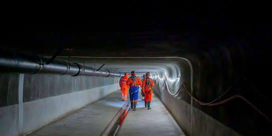Unter dem Gleisfeld bei der Duttweilerbrücke in Zürich werden zwei Mischabwasserkanäle saniert. Die beiden parallel verlaufenden Kanäle unterqueren den rund 280 Meter breiten Gleisbereich und leiten das Abwasser aus den Kreisen 2, 3, 4 und 9 in Richtung der Kläranlage Werdhölzli. Im Auftrag von ERZ Entsorgung + Recycling planen, koordinieren und begleiten wir die Sanierung der insgesamt über einen Kilometer langen Kanalstrecke. Nun ist der erste der beiden Mischabwasserkanäle erfolgreich saniert und bereits in Betrieb genommen. Ein einzigartiger Einblick: