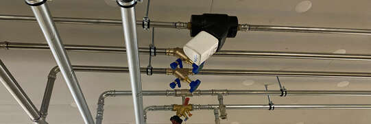 Für den hydraulischen Abgleich in der Zirkulation kommt das Hycleen Automation System der Firma +GF+ zum Einsatz. Dieses System steuert die warmzuhaltende Installation zentral über einen Master sicher und komfortabel. Das automatisierte Zirkulationsregelsystem gewährleistet einen harmonischen und zuverlässigen Betrieb der gesamten Installation. Alle Systemdaten können über den Master gesteuert, protokolliert, ausgewertet sowie auf einem Touchscreen visualisiert und überwacht werden. Statusinformationen und ungewöhnliche Ereignisse werden zusätzlich per Push-Benachrichtigung gemeldet.