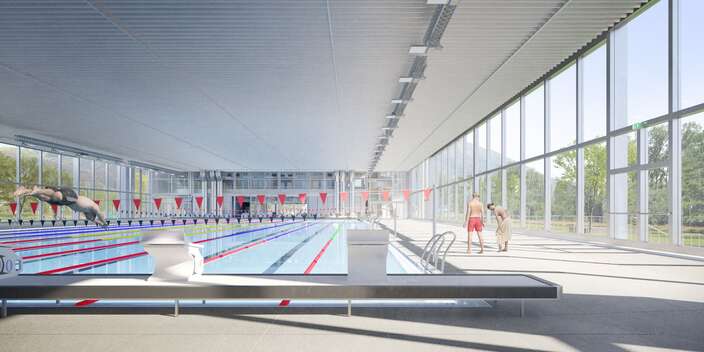 Eines der Highlights des Umbaus ist sicherlich das Hallenbad mit der grossen Fensterfront, welche bei passendem Wetter komplett zur Seite geschoben werden kann. Sozusagen ein Hallenbad mit Freibad-Effekt. Diese Verwandlung benötigt in der Planung viel Fachwissen aus verschiedenen Disziplinen: Energie, Lüftung, Fassadenplanung, usw. und natürlich auch rund um die Badewasser-Technik. Geplant ist, dass die Schiebetüren der Fensterfronten von Mai bis September geöffnet werden können. Durch das Öffnen der Fensterfront verändern sich die Betriebsbedingungen sofort: